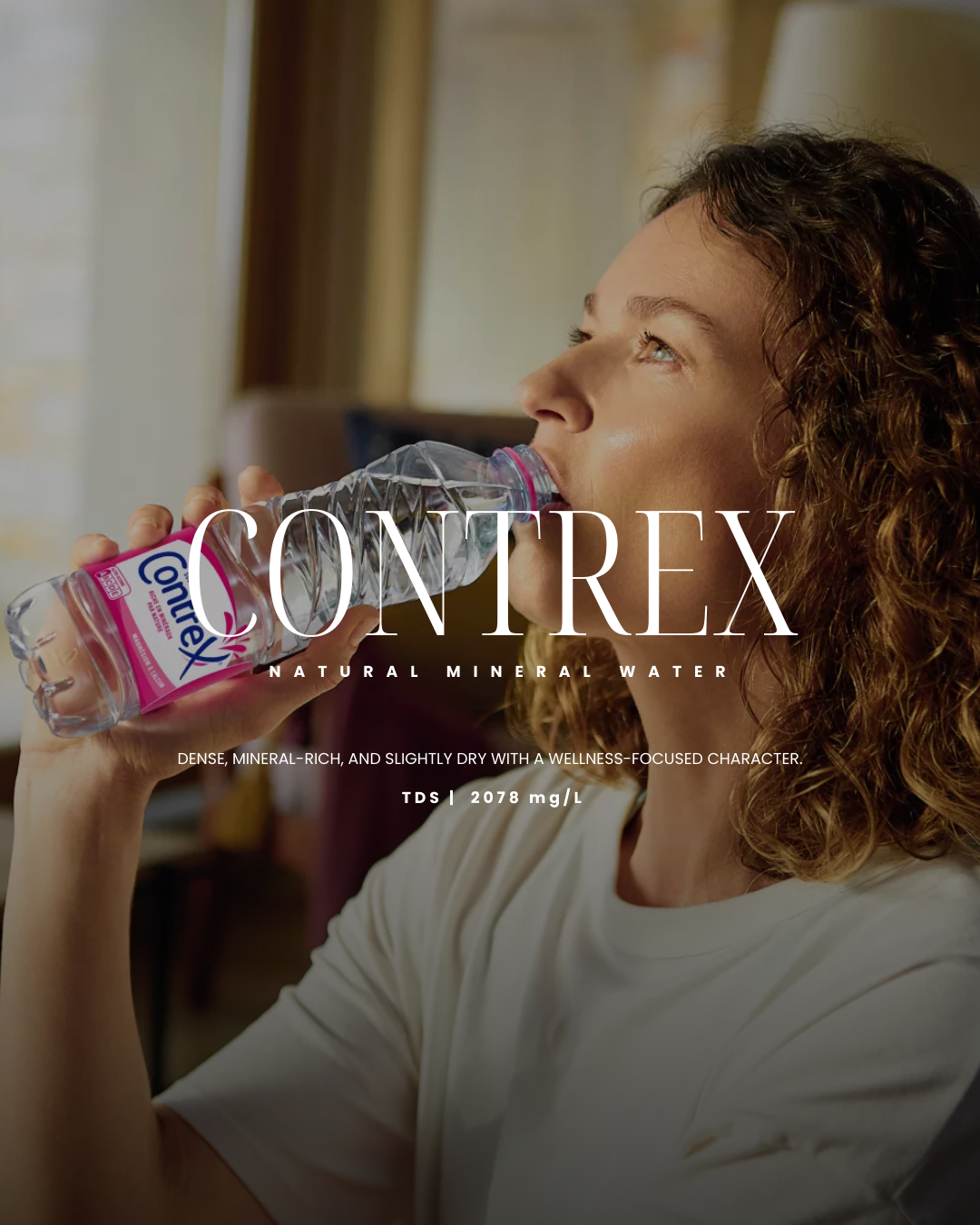 Contrex is a still, highly mineralized French water celebrated for its wellness properties, especially its high calcium and magnesium content. Its dense, mineral-forward taste makes it ideal for health-conscious routines and pairing with rich, flavorful foods, standing apart from lighter waters like Evian or Volvic.